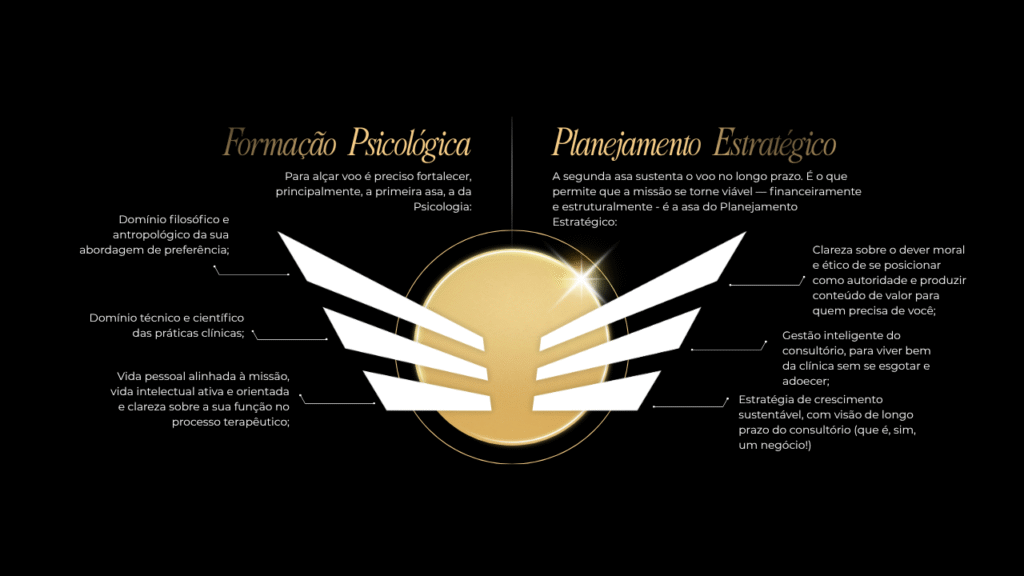 O Terapeuta Completo aprende a voar com as duas asas: vocação e estratégia. Missão e método. Cura e faturamento.